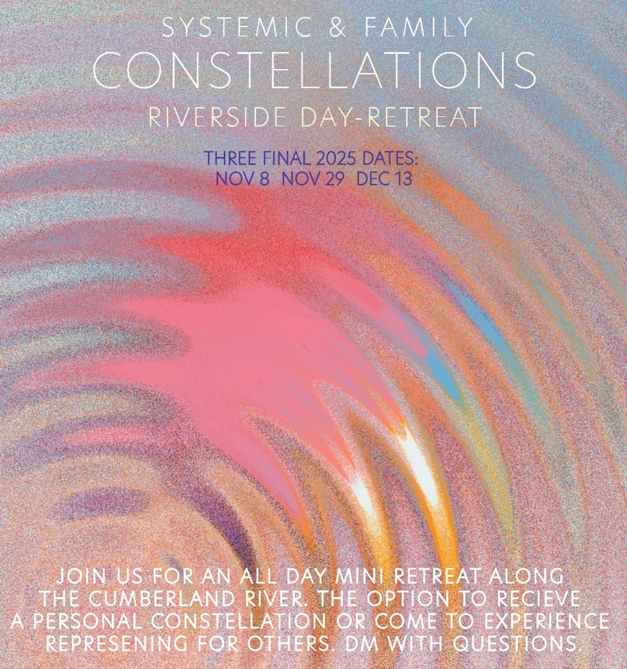 Alongside the bank of the Cumberland River in Nashville, an idealic setting is provided for Systemic Nature and Family Constellations. Here, everyone has an opportunity to receive just what they need in order to bring resolve, clarity, more flow and love into their life, as well as the opportunity to receive healing through the resonance that occurs in the process of representing in the various constellations throughout the day.